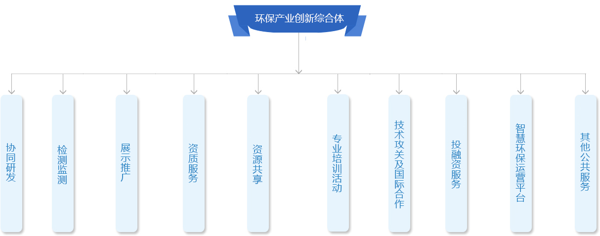 中電環(huán)保發(fā)揮行業(yè)龍頭作用,聯(lián)合“政產(chǎn)學(xué)研金才”綜合資源,打造“環(huán)保產(chǎn)業(yè)創(chuàng )新綜合體”,包括:“二區、三聯(lián)盟、三中心、七功能”。 二區:國家級環(huán)保服務(wù)業(yè)集聚區、江蘇省級生態(tài)環(huán)境產(chǎn)業(yè)創(chuàng )新集聚區。 三聯(lián)盟:環(huán)保產(chǎn)業(yè)技術(shù)創(chuàng )新聯(lián)盟(科技部1個(gè)、生態(tài)環(huán)境部1個(gè)、南京市1個(gè)),同時(shí)成立黨建聯(lián)盟。 三中心:環(huán)保產(chǎn)業(yè)創(chuàng )新中心暨創(chuàng )新公司。分別聯(lián)合南大、東大、河海等及其人才團隊、省環(huán)科院、地方政府,通過(guò)股權緊密合作,按照“中心+公司”模式建設新型研發(fā)機構。 以“產(chǎn)業(yè)+平臺”雙翼模式發(fā)展產(chǎn)業(yè),以市場(chǎng)需求導向研發(fā),促進(jìn)科技創(chuàng )新、人才創(chuàng )業(yè)、成果轉化和產(chǎn)業(yè)集聚,孵化高科技企業(yè),賦能產(chǎn)業(yè)創(chuàng )新發(fā)展,打造環(huán)保支柱產(chǎn)業(yè)。